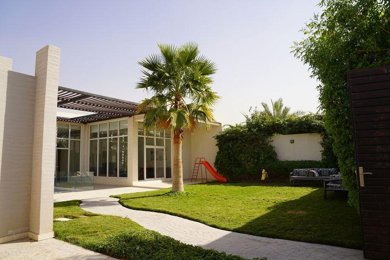 Garage + garden + swimming pool + outdoor seating that can for 14 people + an outdoor bathroom + a new furnished indoor living room from IKEA that can accommodate 18 people + a dining table for 6 people + a bathroom and a sink + a kitchen equipped with a refrigerator, microwave, electric oven, and kettle + bedrooms in Its own bathroom