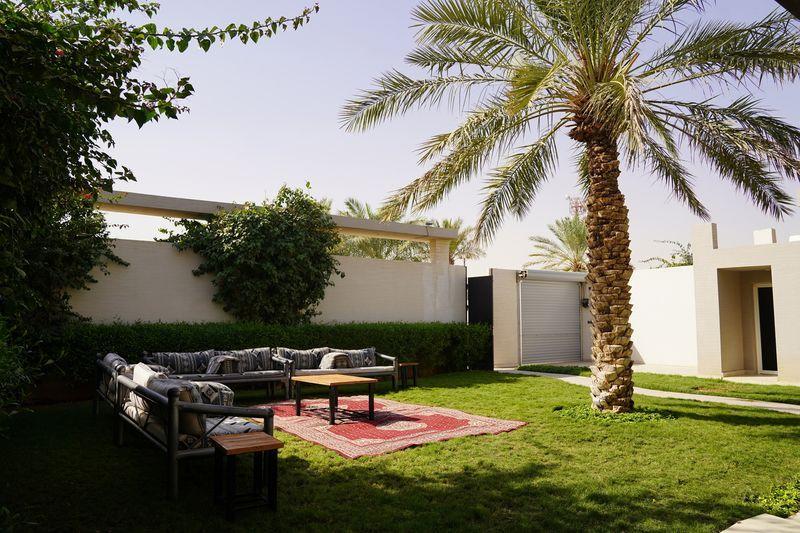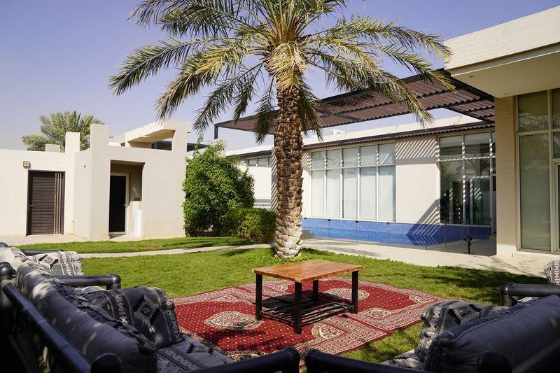Car entrance + garden + swimming pool + outdoor seating for 10 people + an outdoor bathroom + a new furnished indoor sitting room from IKEA that can accommodate 14 people + a dining table for 6 people + a bathroom and a sink + a kitchen equipped with a refrigerator, microwave, electric oven, and kettle + bedrooms in Its own bathroom
